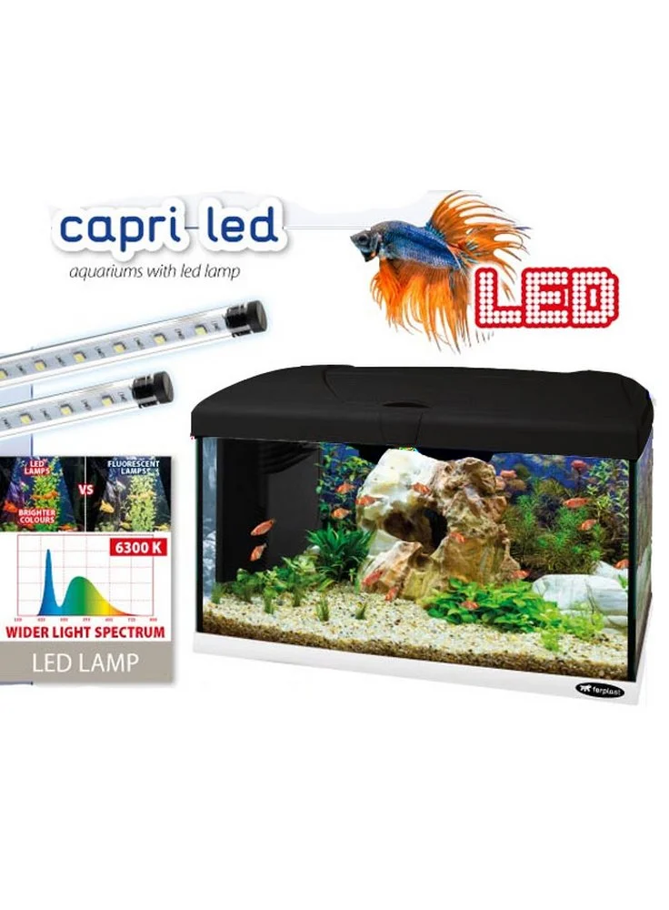 Capri 50 ha tutte le caratteristiche per essere un grande acquario! 40 litri di meraviglia grazie anche ad una dotazione di accessori super performanti: