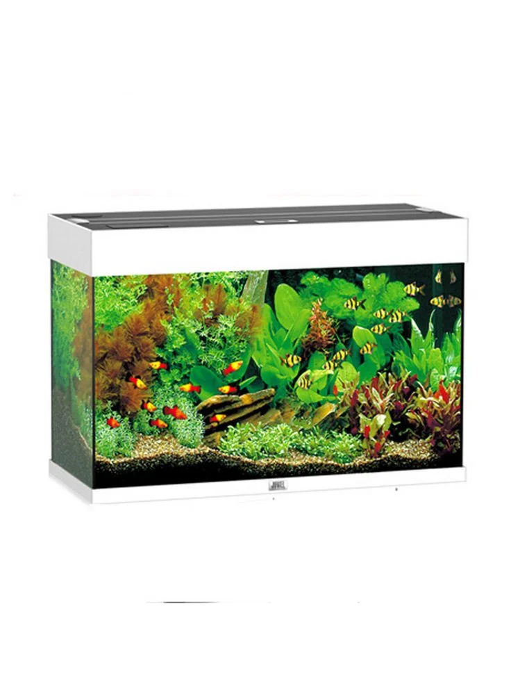 Acquario con tutti gli accessori tecnici come impianto luci led con due tubi da 14W, DAY e NATURE che sostituiscono i T5 con un risparmio energetico del 50% rispetto alla versione precedente, filtro biologico con materiali filtranti, pompa e riscaldatore, Rio 125 è Made in Germany realizzato in vetro float, siliconature realizzate con impianti robotizzati.