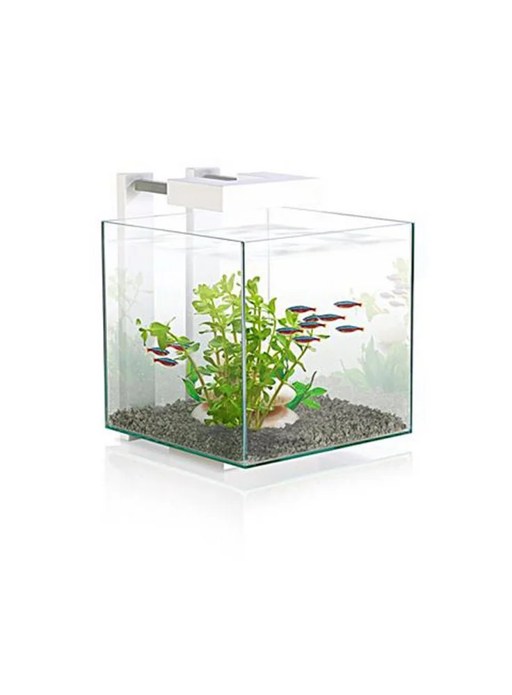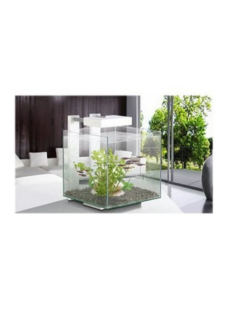 Piccolo acquario in vetro adatto ad ospitare betta splendens o caridine. Dotato di illuminazione a led ad alta efficienza adatta ad illuminare anche le piante più esigenti. Piccolo filtro con spugna filtrante in dotazione. Vasca in vetro da 14 litri 25x25x31,5 su supporto bianco.