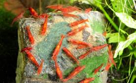 Il cibo può essere messo su una pietra, una radice o sul vetro dell’acquario e forma un “prato di gamberi” che i gamberi amano mangiare.