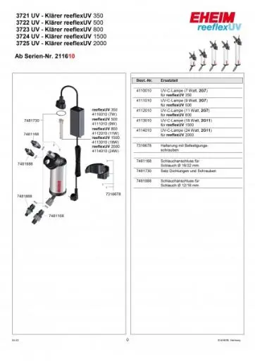 Ingredienti Eheim Reeflexuv 2000 Esterilizador Uv