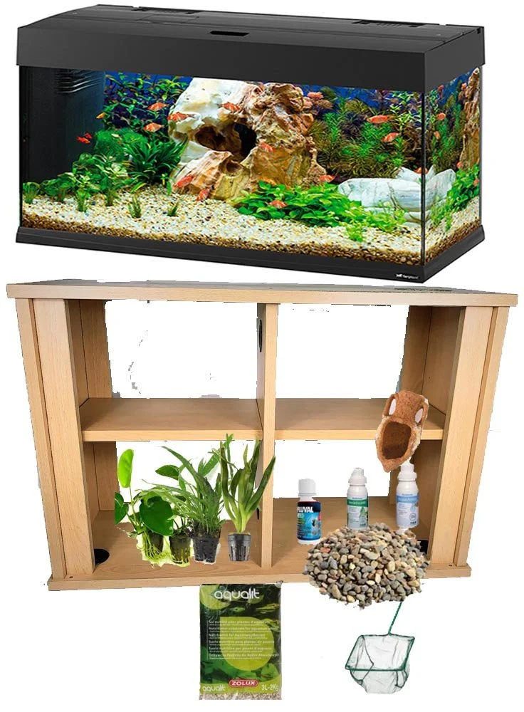 Acquario dubai 120 con impianto luci a led allestimento dolce e supporto compresi nel prezzo