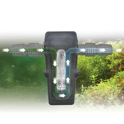 Chiarriente UVC fluvale online, facile e veloce da connettersi alla maggior parte delle strutture con filtri di mercato esterni, il chiarificatore online UVC elimina i batteri e le alghe sospese per avere un acquario pulito e sano.