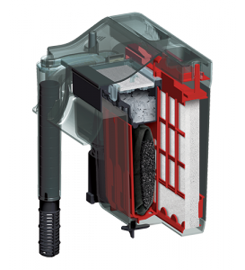 – Presenta un sistema de control de refiltración patentado que le permite ralentizar la salida del agua y generar un flujo suave para proteger plantas y peces delicados.