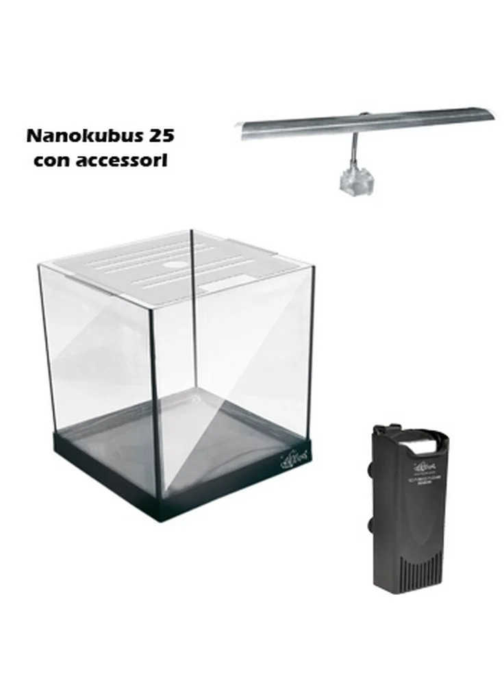Gli acquari della serie NANOKUBUS LED, grazie ai loro accessori IN DOTAZIONE, sono completi e pronti all’uso; con il loro coperchio completamente rimovibile sono versatili con facile accesso ai filtri ed all’interno vasca per le manutenzioni.