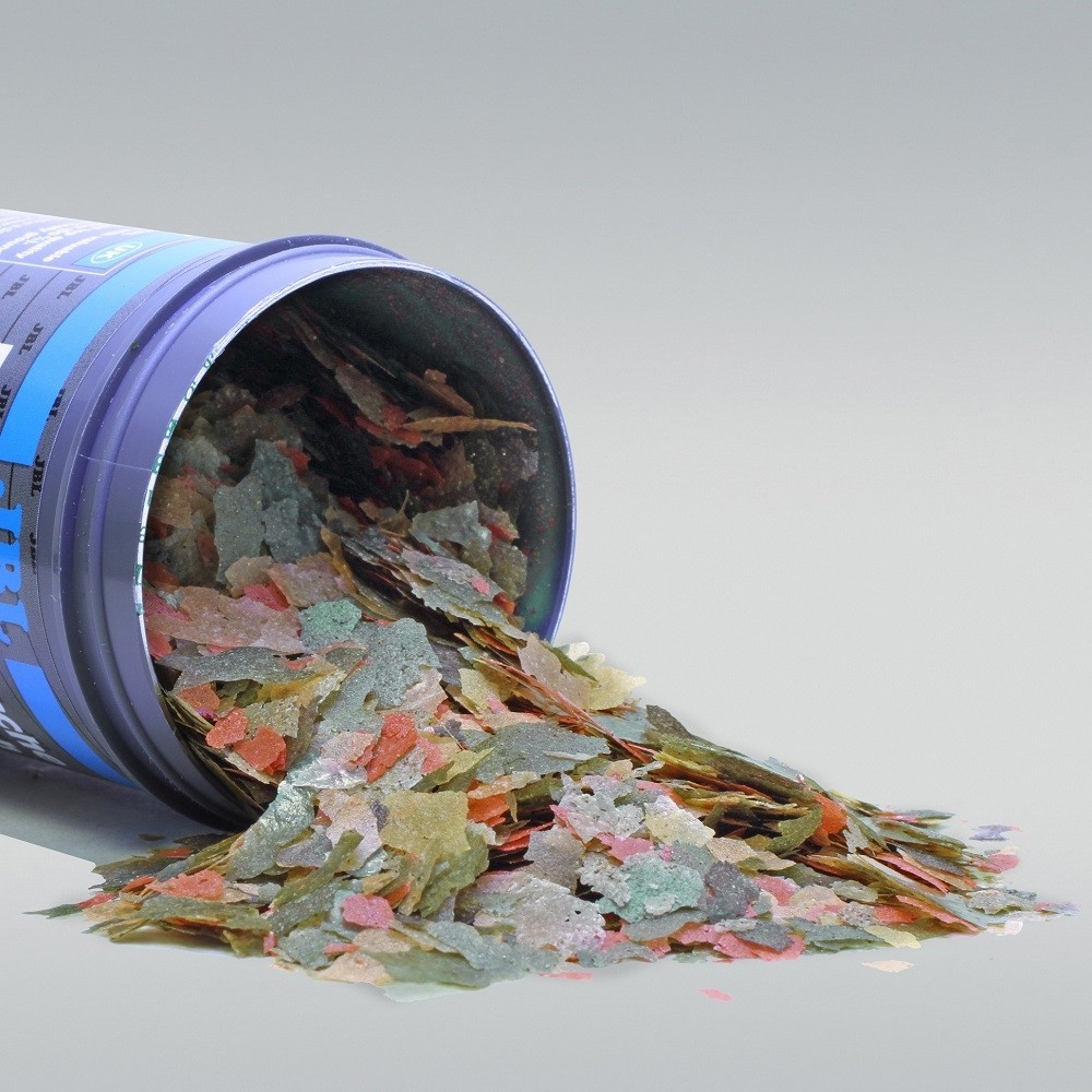 – Con fiocchi di krill ricchi di proteine ??e alghe spirulina.