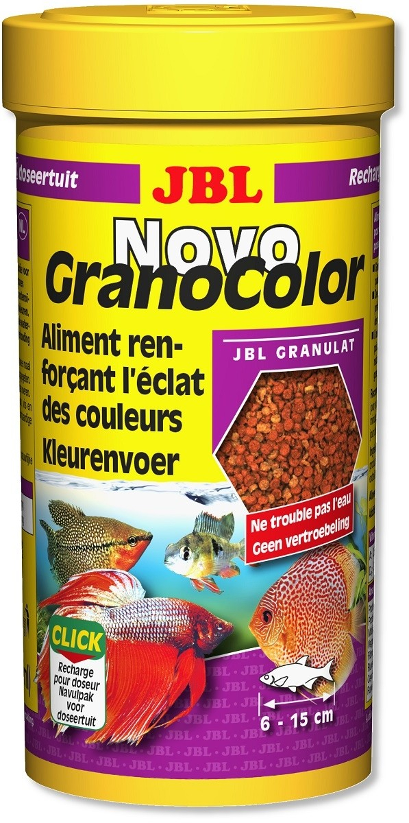 JBL NovoGranoColor è una alimenti di base per pesci d’acquario colorati di medie e grandi dimensioni.