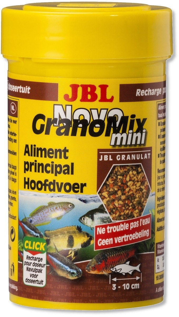 JBL NovoGrano Mix mini è un alimento in granuli che preserva la qualità del prodotto e con un alto contenuto di sostanze nutritive. Una parte di questi granuli scende lentamente nell’acqua, l’altra parte galleggia sulla superficie, così che i pesci possano mangiare in qualsiasi zona dell’acquario.