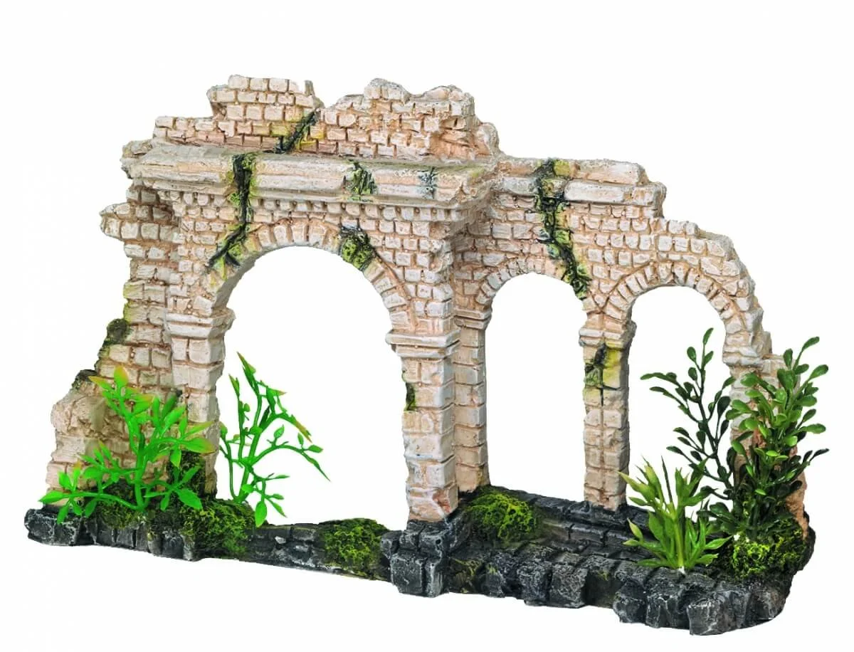 Decorazione in resina per acquari che ricrea archi in mattone.