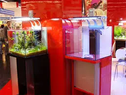 Vasca in vetro extrachiaro con siliconature nere, vetro molato e arrotondato, dotata di 2 lampade led da 6,5w luce naturale 4000k ideali per acquari d’acqua dolce, mobile in legno laccato nero o rosso, bellissimo elemento di arredamento in casa.